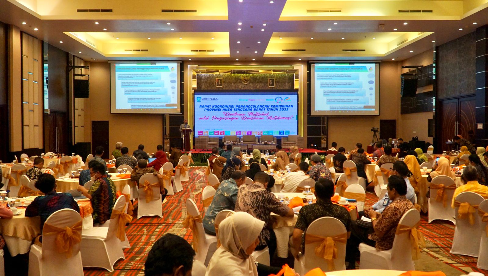 Kepala Bappeda NTB, Dr. Ir. H. Iswandi, M.Si sampaikan sambutan dalam kegiatan rapat koordinasi penanggulangan kemiskinan provinsi Nusa Tenggara Barat Tahun 2022 dengan tema “Kemitraan Multipihak Untuk Pengurangan Kemiskinan Multidimensi”. Bertempat di Golden Palace Hotel, kegiatan ini dilaksanakan secara hybrid dengan dihadiri berbagai pihak, OPD Provinsi maupun Kabupaten, NGO dan akademisi. Kamis, 29 Desember 2022.