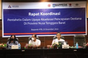 Kepala Bidang Infrastruktur dan Kewilayahan Bappeda Provinsi NTB, H. Agus Hidayatullah, ST., MT., memimpin Rapat Koordinasi Pentahelix Dalam Upaya Akselerasi Pencapaian Destana di NTB, dihadiri perangkat daerah terkait lingkup Pemerintah Provinsi NTB. Bertempat di ruang rapat Geopark Bappeda NTB, Jumat 23 Desember 2022.