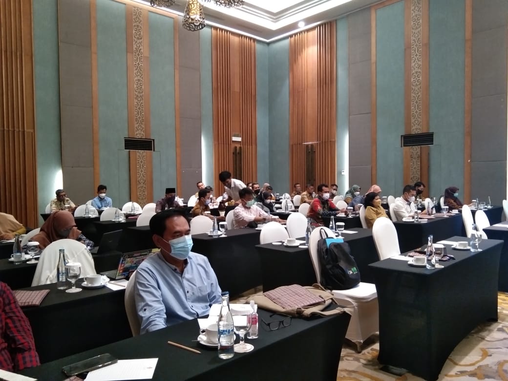 Kasuibbid Pendidikan dan Kesehatan Bappeda Provinsi NTB, Taufik Hari Suryanto, SKM., memberi sambutan dan membuka acara Coaching Clinic 3&7 Implementasi SSK program percepatan pembangunan sanitasi permukiman Provinsi NTB. Dihadiri Pokja PPAS/AMPL/PKP se-Kabupaten/Kota di Provinsi NTB Bertempat di Hotel Aruna, senin 1 November 2021.