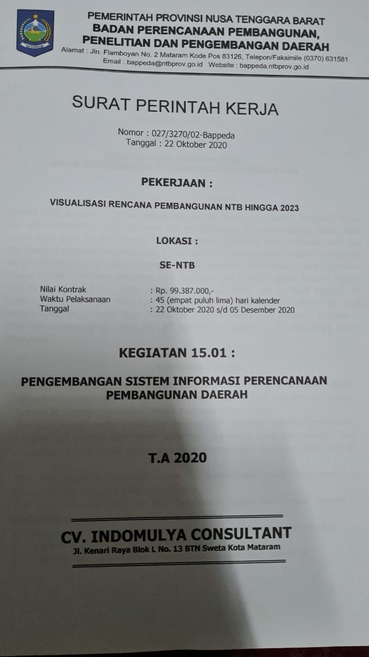 Daftar Surat Perjanjian Dengan Pihak Ketiga Mengenai Pengadaan Barang dan Jasa SPK Visualisasi Rencana Pembangunan NTB Hingga 2023 Tahun 2020Tahun 2021Tahun 2022