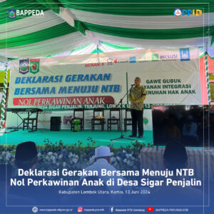 “Kegiatan ini merupakan momentum persatuan kita sebagai masyarakat NTB untuk mewujudkan NTB Nol Perkawinan Anak. Saya mengajak kita semua, seluruh masyarakat, tokoh agama, tokoh masyarakat, organisasi kemasyarakatan, serta pihak swasta untuk berperan aktif dan berkolaborasi dalam mendukung Gerakan Bersama Menuju NTB Nol Perkawinan Anak”, ujarnya.