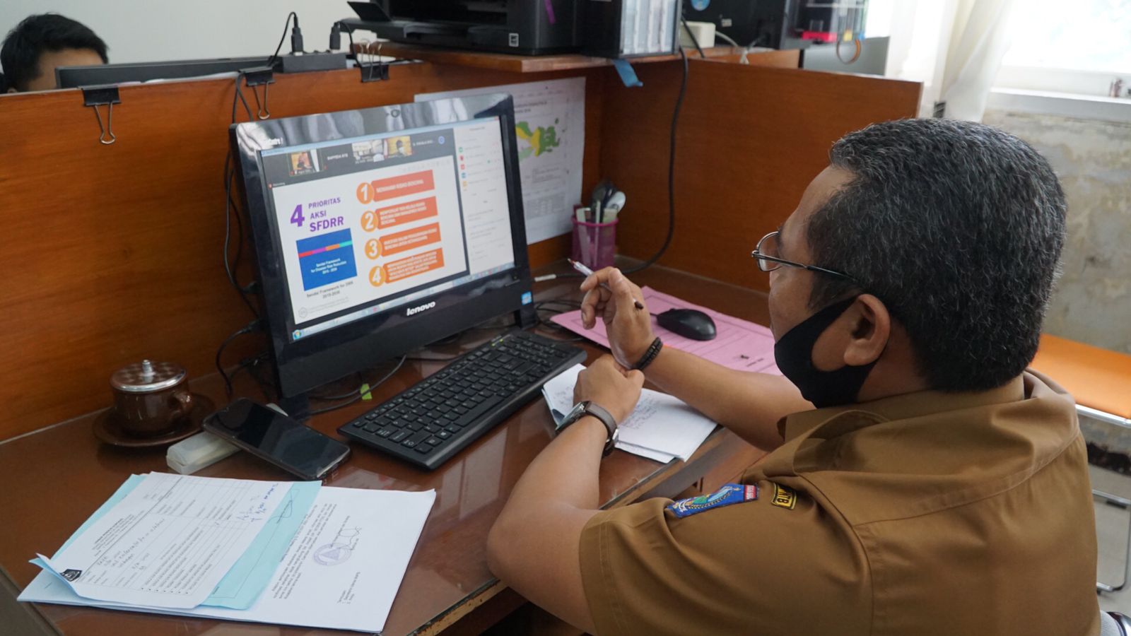 Perwakilan Bidang Infrastruktur dan Kewilayan Bappeda Provinsi NTB mengikuti Zoom Meetng Focus Group Discussion Pengumpulan Data dan Informasi Capaian SFDRR Strategi Pengurangan Resiko Bencana di Tingkat Lokal (Target E) yang diselenggarakan Deputi Bidang Sistem dan Strategi BNPB RI, Senin 18 Oktober 2021.
