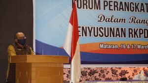 “Perubahan kebijakan anggaran pusat yang cukup terasa juga diperparah lagi dengan oleh terjadinya bencana non alam seperti Covid-19. Secara nyata kita juga dihadapkan dengan terjadinya bencana alam hidrometeorologi seperti hujan berkepanjangan yang menimbulkan banjir, tanah longsor, angin puting beliung yang berakibat pada rusaknya infrastruktur kita di berbagai wilayah di NTB. Karena itu sekali lagi diharapkan semua OPD penghasil ditengah kesulitan saat ini dan dalam forum perangkat daerah ini kita berharap ada solusi-solusi dan harapan-harapan baru agar sumber penerimaan daerah bisa bertambah”.