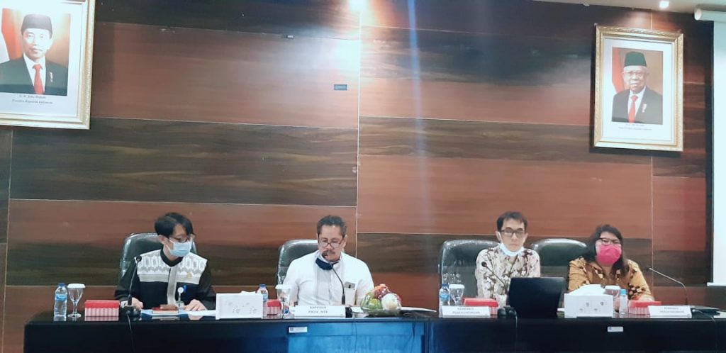 Kota Mataram, Lombok – Bidang Litbang BAPPEDA Provinsi NTB memfasilitasi pertemuan atau kick off meeting antara Pemerintah Daerah Provinsi NTB dengan Kementerian Koordinator Bidang Perekonomian terkait penyelesaian permasalahan tumpang tindih pemanfaatan ruang (sinkronisasi) di Provinsi NTB. Pertemuan dilaksanakan di Ruang Rapat Geopark Bappeda Provinsi NTB yang dihadiri oleh beberapa OPD Provinsi NTB antara lain Dinas PUPR Provinsi NTB, Dinas ESDM Provinsi NTB, Dinas LHK Provinsi NTB, Dinas Pertanian dan Perkebunan Provinsi NTB, Dinas Penanaman Modal dan Pelayanan Terpadu Satu Pintu Provinsi NTB, Dinas Tenaga Kerja dan Transmigrasi Provinsi NTB, dan Dinas Kominfotik Provinsi NTB. Turut hadir perwakilan Kemenko Bidang Perekonomian selaku moderator. Pertemuan juga dilakukan melalui video conference bersama pihak Kemenko Bidang Perekenomian di Jakarta, Jum’at, 17 Juli 2020.