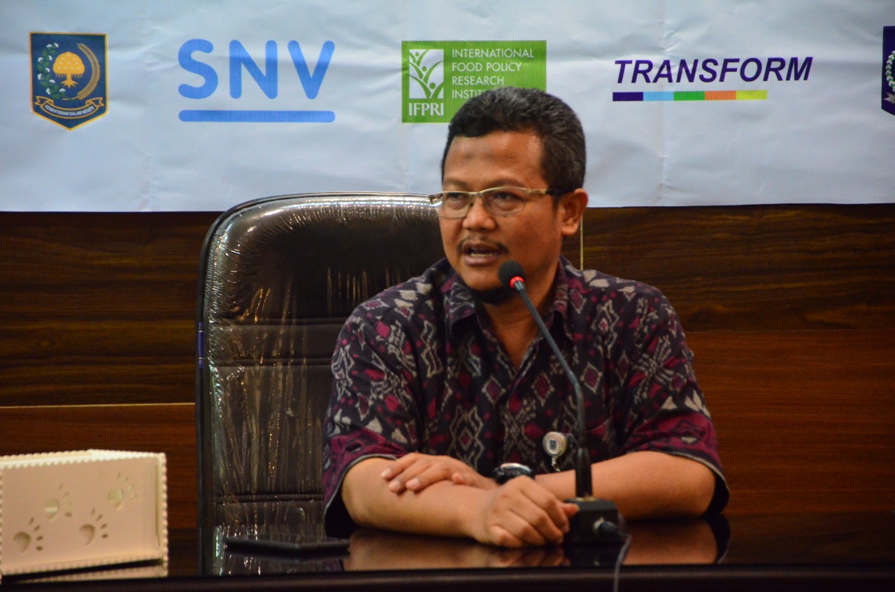 Kasubbid Pendidikan dan Kesehatan Bappeda Provinsi Bapak Taufiq Hari Suryanto, SKM dalam kesempatannya memaparkan tentang kebijakan daerah dalam ketahanan pangan dan gizi serta proses yang telah terlaksana selama penyusunan dokumen RAD PG NTB, yang mana proses ini sudah berjalan cukup lama dengan legal aspek yang tertuang dalam Peraturan Menteri