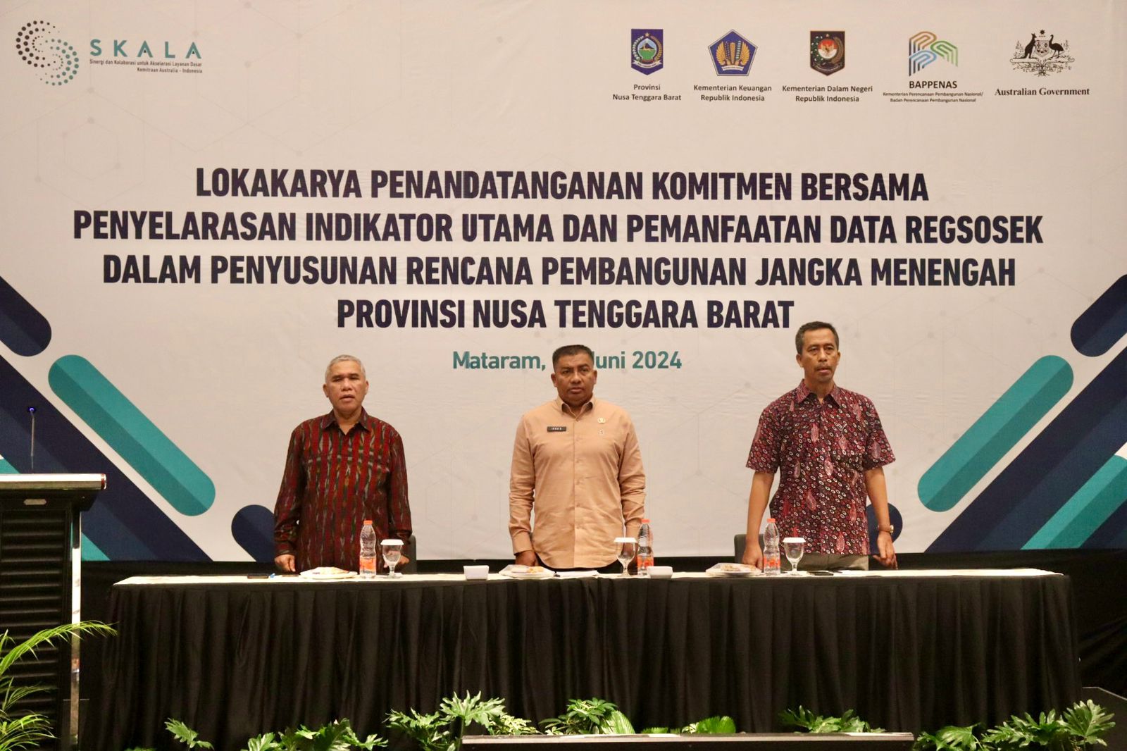 Kepala Bappeda Provinsi NTB, Dr. Ir. H. Iswandi, M.Si., menghadiri Lokakarya Penandatanganan Komitmen Bersama Penyelarasan Indikator Utama Dan Pemanfaatan Data Regsosek Dalam Penyusunan Rencana Pembangunan Jangka Menengah Provinsi NTB. Kegiatan yang berkolaborasi Bersama Mitra Pembangunan SKALA NTB ini dipimpin langsung oleh Pj Sekretaris Daerah NTB, Ibnu Salim, S.H., M.Si., bertempat di Prime Park Hotel. Jumat 14 Juni 2024.