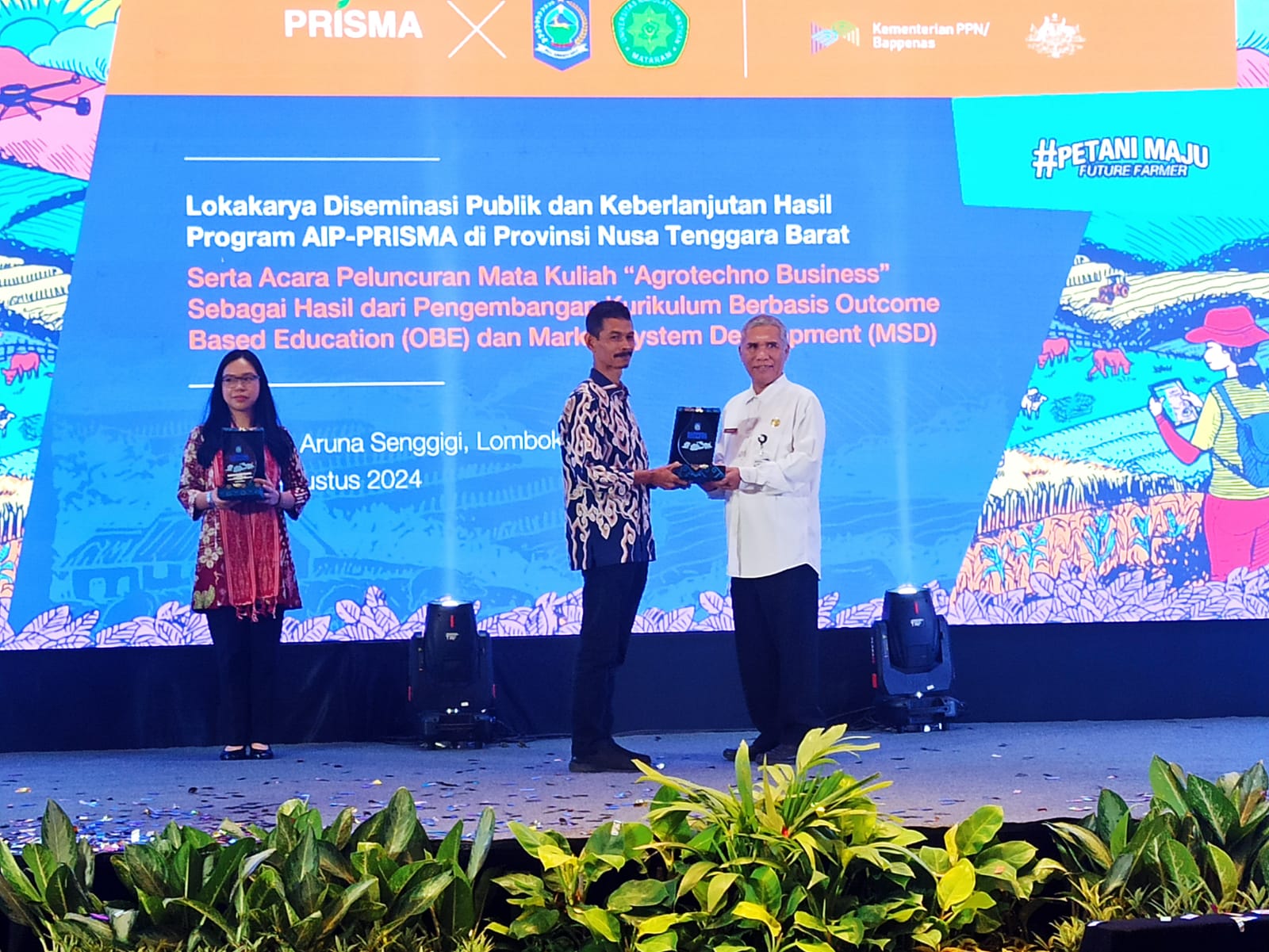 Program PRISMA telah menjadi katalisator perubahan positif di NTB, dengan membawa inovasi dan solusi nyata untuk sektor pertanian dan agribisnis yang bertujuan untuk meningkatkan kesejahteraan petani dan membangun pasar pertanian yang inklusif dengan melibatkan Pemerintah, Sektor swasta dan akademisi, hal ini merupakan salah satu sambutan yang disampaikan oleh Direktur Pangan Pertanian Kementerian PPN/Bappenas Jarot Indarto, SP, MT, MSc, Ph.D, pada acara Penutupan Program AIP-PRISMA di Provinsi Nusa Tenggara Barat serta Acara Peluncuran Mata Kuliah “Agrotechno Business” sebagai Hasil dari Pengembangan Kurikulum berbasis Outcome Based Education (OBE) dan Market System Development (MSD) di Aruna Senggigi Resort & Convention. 28 Agustus 2024.