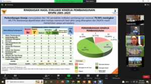 Meitha Pratiwi, staff direktur pemantauan, evaluasi, dan pengendalian pembangunan sektoral Kementerian PPN/Bappenas memaparkan bagaimana tahapan yang mereka lakukan saat evaluasi RPJPN 2005-2025. Terdapat tiga lingkup hal yang dievaluasi; 1) Kinerja pembangunan secara makro sambil mempertimbangkan karakteristik wilayah, 2) Efektifitas kebijakan strategis, sejauh mana dilakukan, dan mencari praktek terbaik dengan melakukan benchmarking dengan Cina dan Thailand, dan 3) Melakukan kajian Dampak atau manfaat kebijakan strategis kepada masyarakat dengan survei persepsi melalui kuesioner online dan offline.