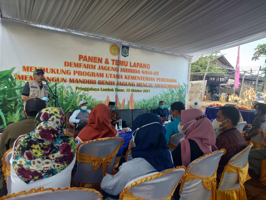 Kepala Bappeda Provinsi NTB, Dr. Ir. H. Iswandi, M.Si., Menghadiri Kegiatan Panen dan Temu Lapang Demfarm Jagung Hibrida Nasa-29 mendukung program utama Kementerian Pertanian bertemakan “Membangun Mandiri Benih Jagung Menuju Swasembada”. Dihadiri Kepala BPTP NTB, Kabid Pertanian Lombok Timur, Kepala Dinas Pertanian Lombok Timur, bertempat di Pringgabaya, Kabupaten Lombok Timur, Jumat 15 Oktober 2021.