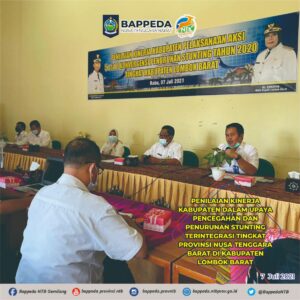 Rabu, 7 Juli 2021, Kabid Pemerintahan dan Pembangunan Manusia Bappeda Provinsi NTB, H. Huailid, S.Sos., M.Si., menjadi Tim Penilai Konvergensi Penurunan Stunting di Kabupaten Lombok Barat, dihadiri perwakilan Dinas Kesehatan NTB, BKKBN NTB, DPMPD Dukcapil NTB, Politeknik Kesehatan Mataram, dan DPD Persagi NTB.