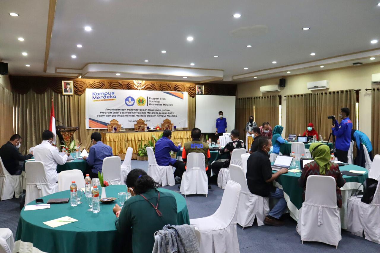 Kamis, 29 Juli 2021, Sekretaris Bappeda Provinsi NTB Dr. Mahjulan, MP., Menghadiri acara Perumusan dan Penandatangan Kerjasama antara Program Studi Sosiologi Universitas Mataram dengan Mitra dalam rangka Implementasi Merdeka Belajar Kampus Merdeka yang diadakan Program Studi Sosiologi Universitas Mataram, dihadiri Ketua Program Studi Sosiologi Universitas mataram Ir. H. Rosyadi Husaini Sayuti, M.Sc., Ph.D., beberapa perwakilan perangkat daerah Lingkup Provinsi NTB, dan LSM.