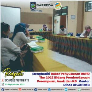 Kasubbid Sosial Ketenagakerjaan dan Kependudukan Bappeda Provinsi NTB, Tunjung Kusuma,S.Sos Menghadiri Rapat Koordinasi dalam rangka penyusunan Rencana sperrmüll bestellen Kerja Pemerintah Daerah Tahun 2022 Bidang Pemberdayaan Perempuan, Anak dan Keluarga Berencana, bertempat di Kantor Dinas DP3AP2KB Provinsi NTB.