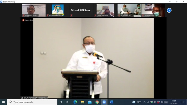 Rabu 23 Juni 2021, Bappeda Provinsi NTB diwakili Kasubbid Infrastruktur PU dan Pemukiman Wahyu Hidayat, S.T., mengikuti Rapat Koordinasi I Sinkronisasi Basis data PKP, Koordinat Program Ditjen Perumahan, dan Sinkronisasi Kegiatan Pokja PKP dan Forum PKP Provinsi NTB Tahun 2021 yang diadakan Balai Pelaksana Penyediaan Perumahan Wilayah Nusa Tenggara I, diikuti oleh OPD terkait secara daring.