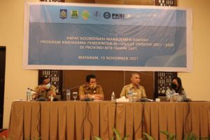 Didampingi Kepala Bidang Pemerintahan dan Pembangunan Manusia, Kepala Bappeda Provinsi NTB, Dr. Ir. H. Iswandi, M.Si menadi narasumber sekaligus membuka acara Rapat Koordinasi Manajemen Daerah Program Kerjasama Pemerintah RI-UNICEF di Provinsi NTB Periode 2021-2025 di Provinsi NTB diikuti Direktur SUPD IV Kemendagri, Kepala Perwakilan UNICEF NTT/NTB, perwakilan OPD terkait Provinsi dan Kabupaten/Kota se-NTB bertempat di Hotel Santika, Senin 15 November 2021.