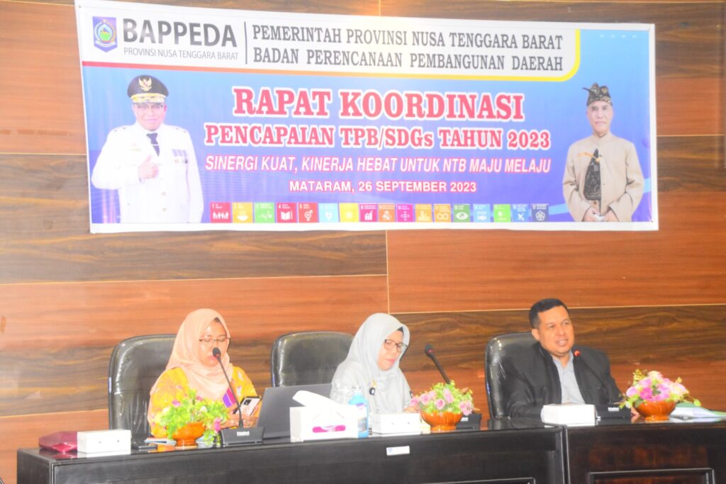 Sekretaris Bappeda Provinsi NTB, Dr. Mahjulan, SP., MP., memimpin Rapat Koordinasi Pencapaian TPB/SDGs Tahun 2023, dihadiri Perangkat Daerah terkait lingkup Pemerintah Provinsi NTB, serta Mitra Pembangunan terkait. Bertempat di ruang rapat Geopark Bappeda NTB, Selasa 26 September 2023.