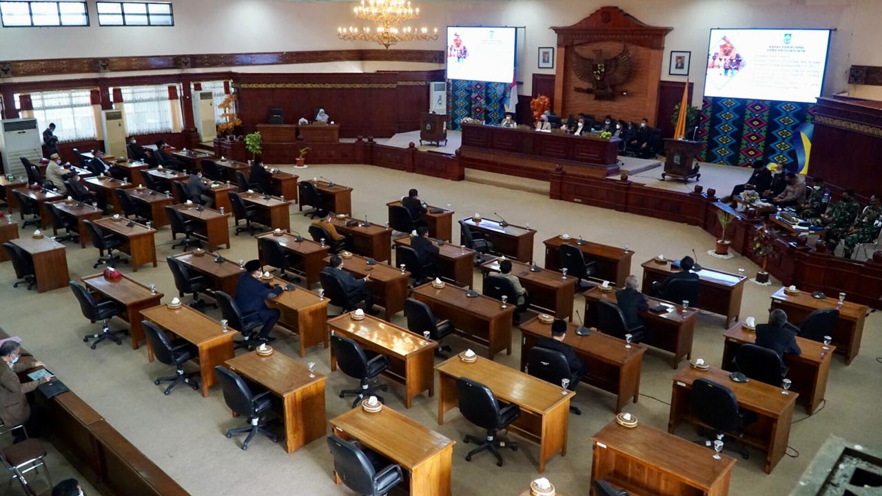 Dipimpin Pimpinan DPRD Provinsi NTB, Kepala Bappeda Provinsi NTB, Dr. Ir. H. Iswandi, M.Si menghadiri rapat Paripurna Pertama DPRD Provinsi NTB Masa Persidangan III Tahun 2021, dihadiri Wakil Gubernur Provinsi NTB, Sekretaris Daerah Provinsi NTB dan Forkopimda Provinsi NTB, di ruang rapat Paripurna Kantor DPRD Provinsi NTB. selasa 7 September 2021.