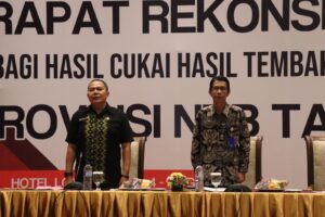 Didampingi Koordinator Bidang Pertanian, Syamsul Hidayat, S.Pt., Kepala Bidang Perekonomian dan SDA Bappeda Provinsi NTB, Iskandar Zulkarnain, ST., M.Si., membuka sekaligus memimpin Rapat Rekonsiliasi Dana Bagi Hasil Cukai Hasil Tembakau (DBHCHT) Provinsi NTB Tahun Anggaran 2021. Dihadiri perangkat daerah terkait lingkup Pemerintah Provinsi maupun Kabupaten/Kota di NTB, bertempat di Hotel Lombok Raya, Kamis 4 Agustus 2022.