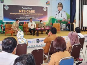 Pejabat Fungsional Arsiparis Madya Bappeda Provinsi NTB, Ni Luh Ester Yutiasih, S.Sos., menghadiri Sosialilasi Aplikasi NTB Care dan layanan pengaduan masyarakat lainnya, bertempat di Aula Dinas Kominfotik, Senin, 22 November 2021.