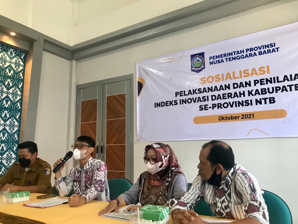 Didampingi Kasubbid Inovasi, Teknologi dan Kewilayahan, Kepala Bidang Penelitian dan Pengembangan Daerah Bappeda Provinsi NTB, Lalu Suryadi, SP.,MM., menjadi narasumber pada Sosialisasi Pelaksanaan dan Penilaian Indeks Inovasi Daerah Kabupaten/Kota se-NTB. Bertempat di Bappeda Kabupaten Lombok Barat, Selasa, 12 Oktober 2021.