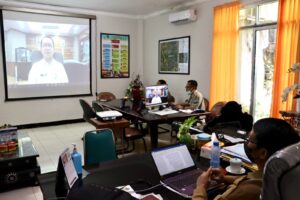 Kepala Bidang Penelitian dan Pengembangan Daerah Bappeda Provinsi NTB, Lalu Suryadi SP., MM. mengikuti zoom meeting koordinasi regional yang diselenggarakan Kementerian Desa Pembangunan Daerah Tertinggal dan Transmigrasi bertempat di ruang rapat Bappeda, Senin, 8 November 2021.