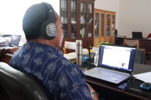 Koordinator Bidang Pertanian pada Bidang Perekonomian dan SDA Bappeda Provinsi NTB, Syamsul Hidayat, S.Pt, mengikuti Zoom Meeting Sosialisasi PMK Nomor 215/PMK.07/2021 tentang Penggunaan, Pemantauan, dan Evaluasi Dana Bagi Hasil Cukai Hasil Tembakau (DBH CHT), diadakan oleh Dirjen Perimbangan Keuangan Direktorat Dana Transfer Umum, Kementerian Keuangan RI. Kamis 13 Januari 2022.